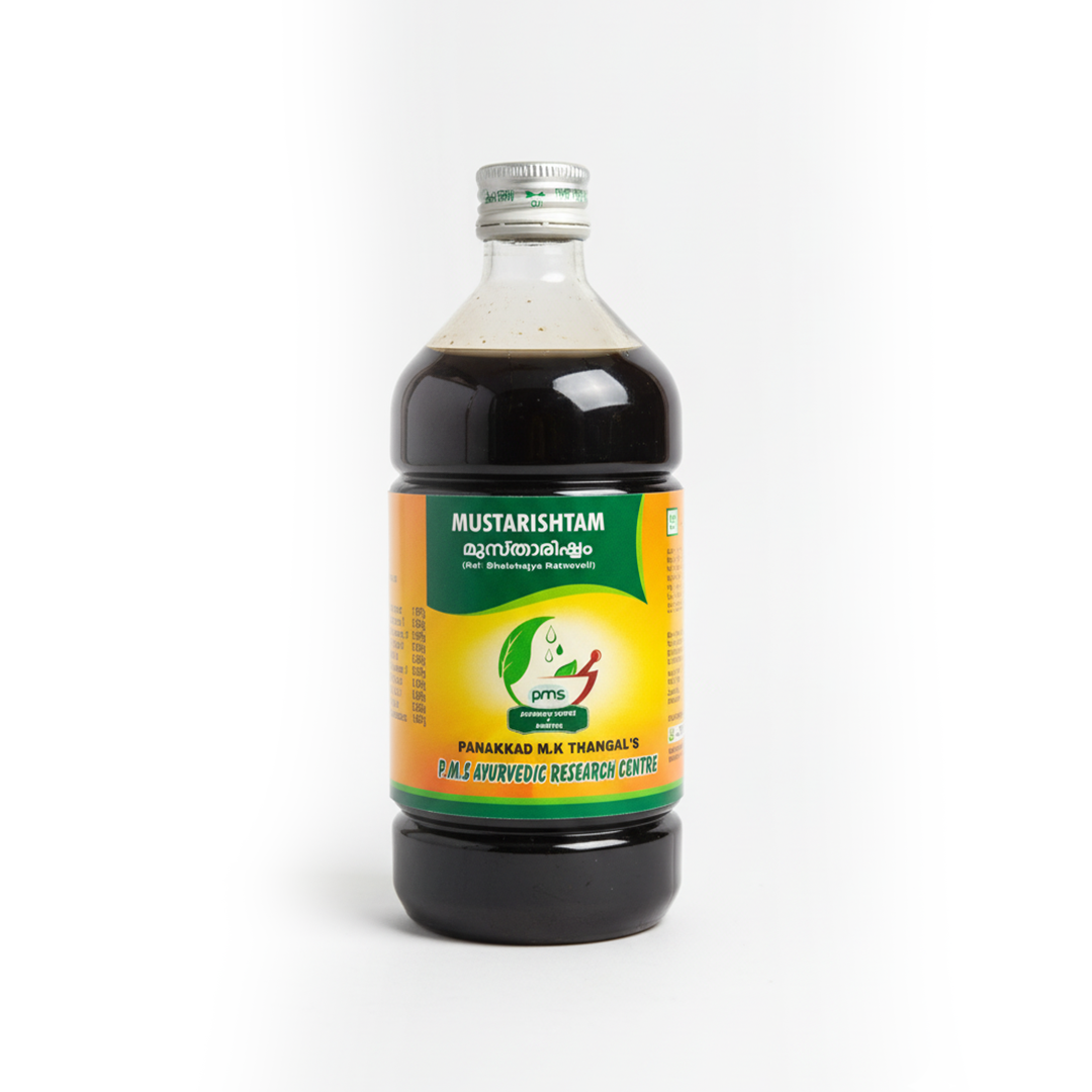 ‘Mustha’ commonly known as Nut grass is a versatile drug that has a holistic balancing action on the three doshas, the tissues they support, and the functions they carry out. Mustarishtam is an immunity booster fortified with appetite and digestion-promoting drugs which boosts immunity. Mustarishtam is hailed by Ayurveda as a potent remedy for recurrent cold, flu and infections. Arishtas are aromatic preparations. The sweet taste of Mustarishtam makes it palatable to kids and adults alike. The base is quick-acting and efficient.